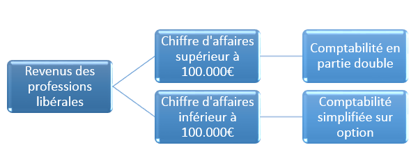 Les commerçants et les professions libérales (médecins, avocats, etc…) qui génèrent un chiffre d’affaires inférieur à 100.000 EUR par an ont quant à eux la possibilité de tenir une comptabilité simplifiée, c’est-à-dire en constatant leur bénéfice simplement par la différence entre la somme arithmétique de leurs recettes et la somme arithmétique de leurs dépenses.
